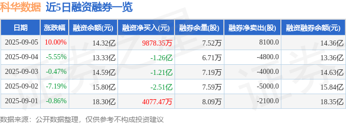 科华数据融资融券信息显示,融资方面,当日融资买入3.81亿元,融资偿还2.83亿元,融资净买入9878.35万元。融券方面,融券卖出1.17万股,融券偿还3600.0股,融券余量7.52万股,融券余额413.6万元。融资融券余额14.36亿元。